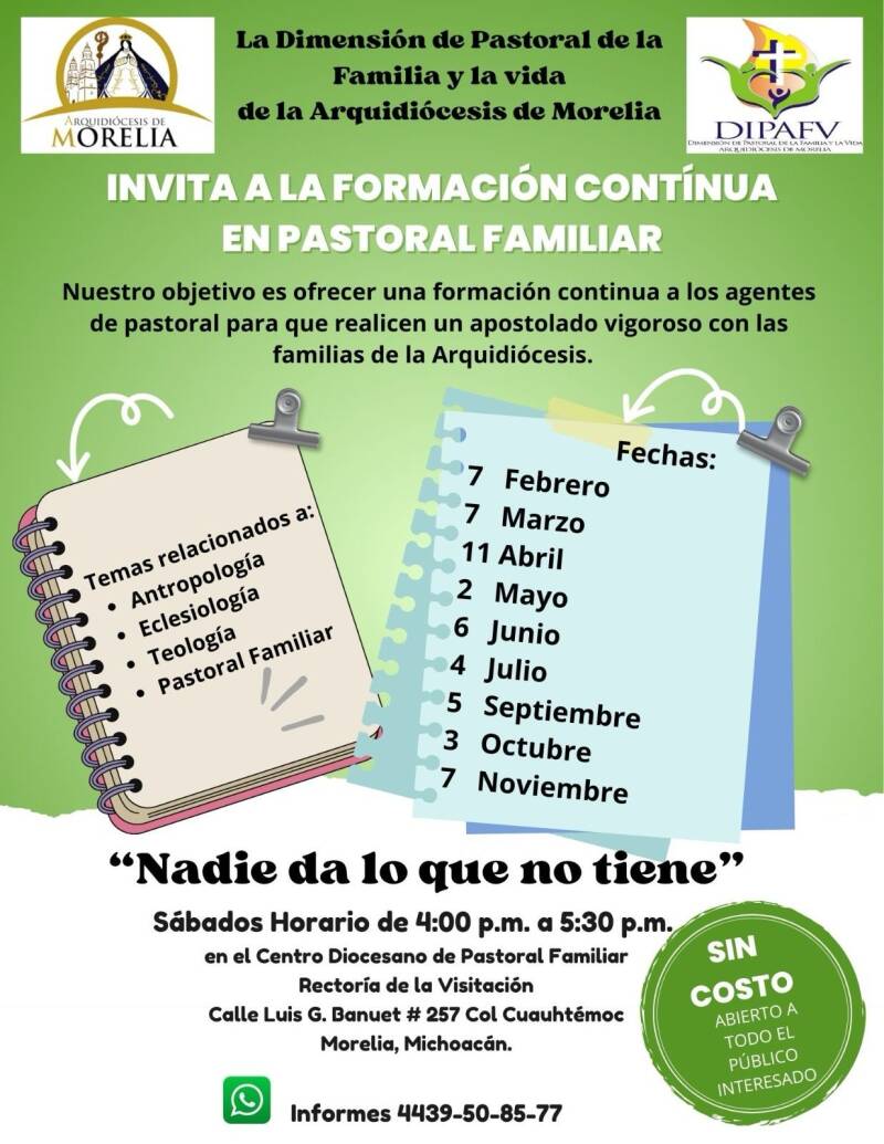 La pastoral familiar se encarga de organizar programas y actividades, así como de crear recursos para que las familias sean "comunidades de amor y de la vida, de la fe y salvación". Y se capaciten para realizar su misión.